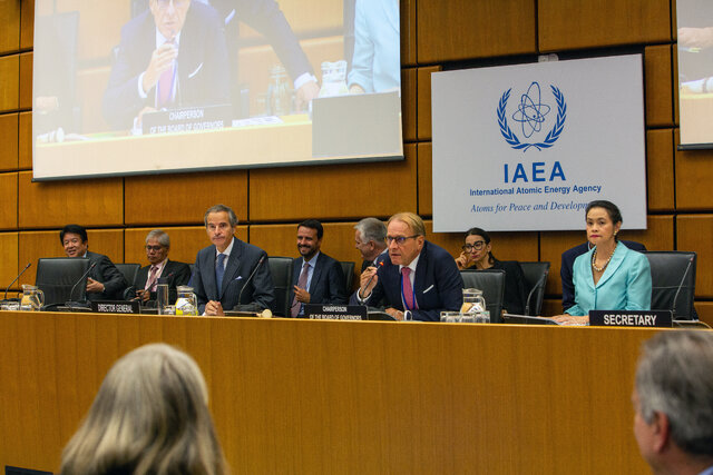 در این بیانیه که توسط نماینده آمریکا قرائت شد و در آن ادعاهایی علیه ایران ذکر شده، آمده است: «ما صادقانه قدردان کار حرفهای و تلاشهای بیطرف و مداوم آژانس در اجرای توافق پادمانی جامع با ایران هستیم. ما دبیرکل را برای تلاشهای فراوانش در تعامل با ایران در رابطه با مسائل پادمانی باقیمانده و اجرای فعالیتهای نظارتی و راستیآزمایی توسط آژانس اتمی تحسین میکنیم. ما در نظر داریم که دبیرکل تاکید داشته که مشکلات پادمانی باقیمانده از تعهدات ایران ذیل توافق پادمانی جامع نشات میگیرد و برای اینکه آژانس در موقعیتی قرار بگیرند که بتواند تضمینهای معتبری در رابطه با ماهیت صلحآمیز برنامه هستهای ایران ارائه دهد، این مشکلات باید حلوفصل شوند. من درخواست دبیرکل مبنی بر همکاری صادقانه ایران با آژانس به شیوهای که تعهدات ارائه شده در بیانیه مشترک ماه مارس اجرا شوند را منعکس میکنم».
